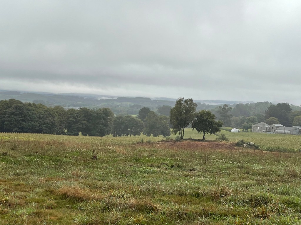 Happy that there was no rain in the forecast, we started out early on a very cold morning. No rain, but plenty of mud on the trails, similar to our last few days on the Camino Primitivo in 2017. There are plenty of chestnuts falling from the trees. Easy to slip on them, so we’ve been careful. Our trekking poles have saved us a few times from falling on our butts!