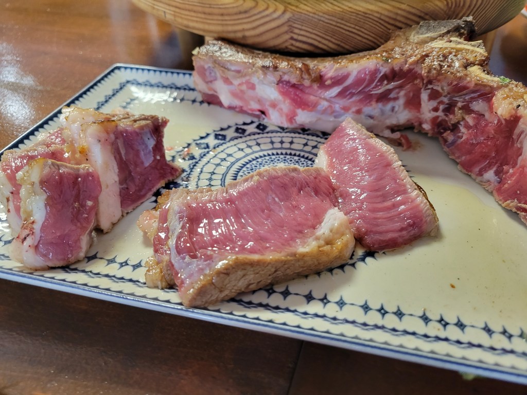 We started seeing significantly more people, since the 3 routes merged as we all walked toward O Pedrouzo. We met our Camino friends Sean and Erin from Ireland at one of our stops, got to chatting, and overshot our turn to the town by a few kilometers. Back on track, we got to the Hostel Residencia Platas, where the woman at the front desk was dealing with an awful woman who had a permanent scowl and a very bad attitude. After we checked in, we asked the lovely front desk woman for a restaurant recommendation. The Café-Bar O Pedrouzo was the BEST! We ordered an ensalada mixta and the steak, which we “cooked” ourselves. It was one of the most delicious steaks we’ve ever had.
