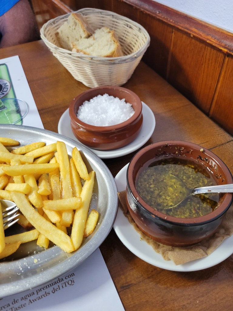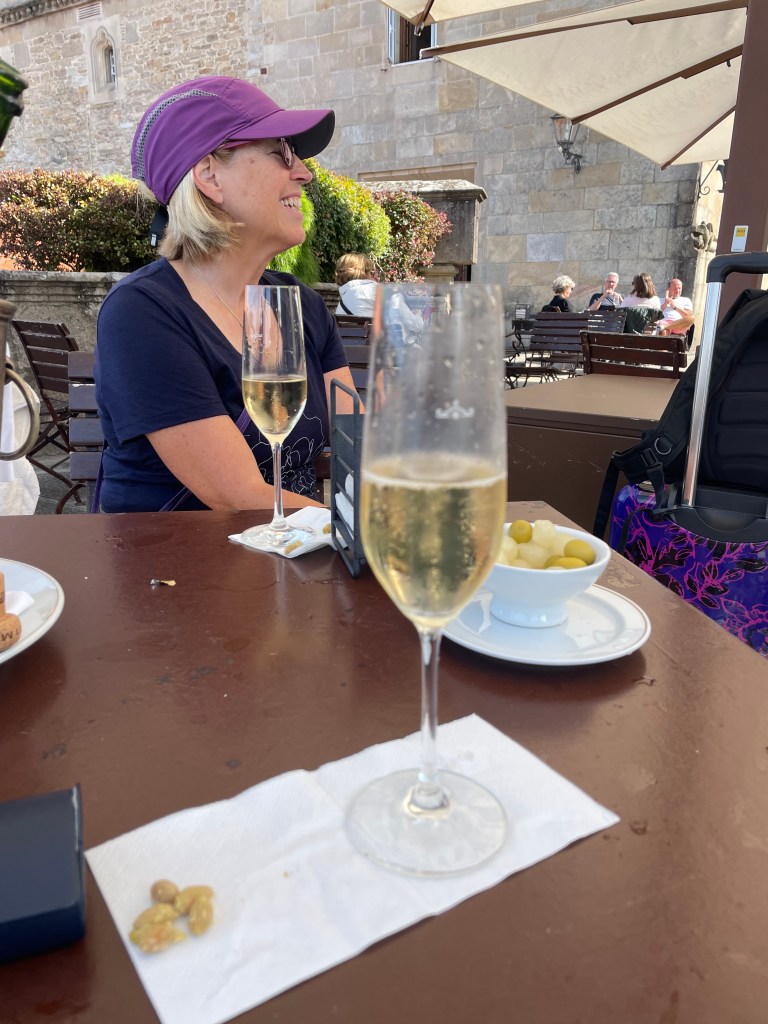 There was only one café on our walk, but it was a relatively short day. Happy to get café con leche and a small cake. And a mini croissant that reminded me of my mom’s butterhorns (crescent rolls) that she made for every holiday for over 60 years.