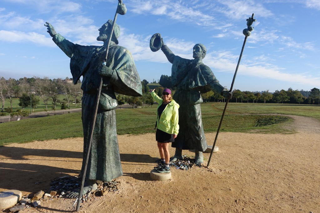 So…. We were almost to Monte Gozo, and Mike was ahead of me (as usual). Lots of people were speaking English, and Mike started chatting with a couple from Colorado Springs, Stephanie and Kyle. They had done the same route (half of the del Norte and then the Primitivo) last year, same as we did in 2017. They were also going toward the pilgrims’ statues, so we continued chatting. I told Stephanie about my mom’s passing and that I feel that she is on this journey with me. I said “I swear, if I meet anyone from Lithuania…”, and she turned to me and asked, “Are you Lithuanian?!” Turns out that ~ yes ~ HER grandmother was born in Lithuania, just like mine. Her mother is half Lithuanian, just like mine. By the time Stephanie and I reached Mike and Kyle, I was crying. Mike looked concerned, and I told him through my tears that Stephanie is part Lithuanian. If he hadn’t decided to speed up to chat with this lovely young couple from Colorado, if we weren’t all walking to the pilgrims’ statues, if I didn’t mention my mom…. But we did all of those things, and my Mom made damn sure that I knew she was right there with me.