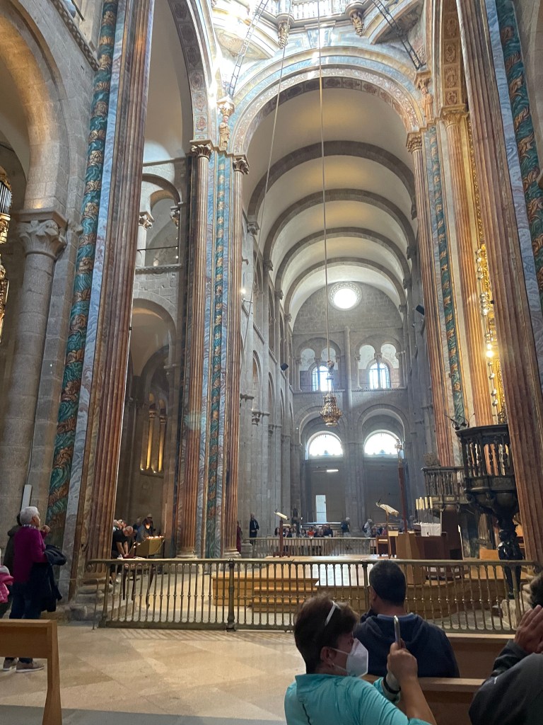 Our short stay in Santiago was fun. After getting our official Certificate of Completion on Monday, we went to the Pilgrims Mass, lit candles for my parents and our friend’s mother, and walked through the “Holy Door” (Porta Santa) in the Cathedral. The door is only opened during Holy Years. 2021 was one of those years, but due to COVID, Pope Francis extended the Jubilee Year and its blessings for an additional year.