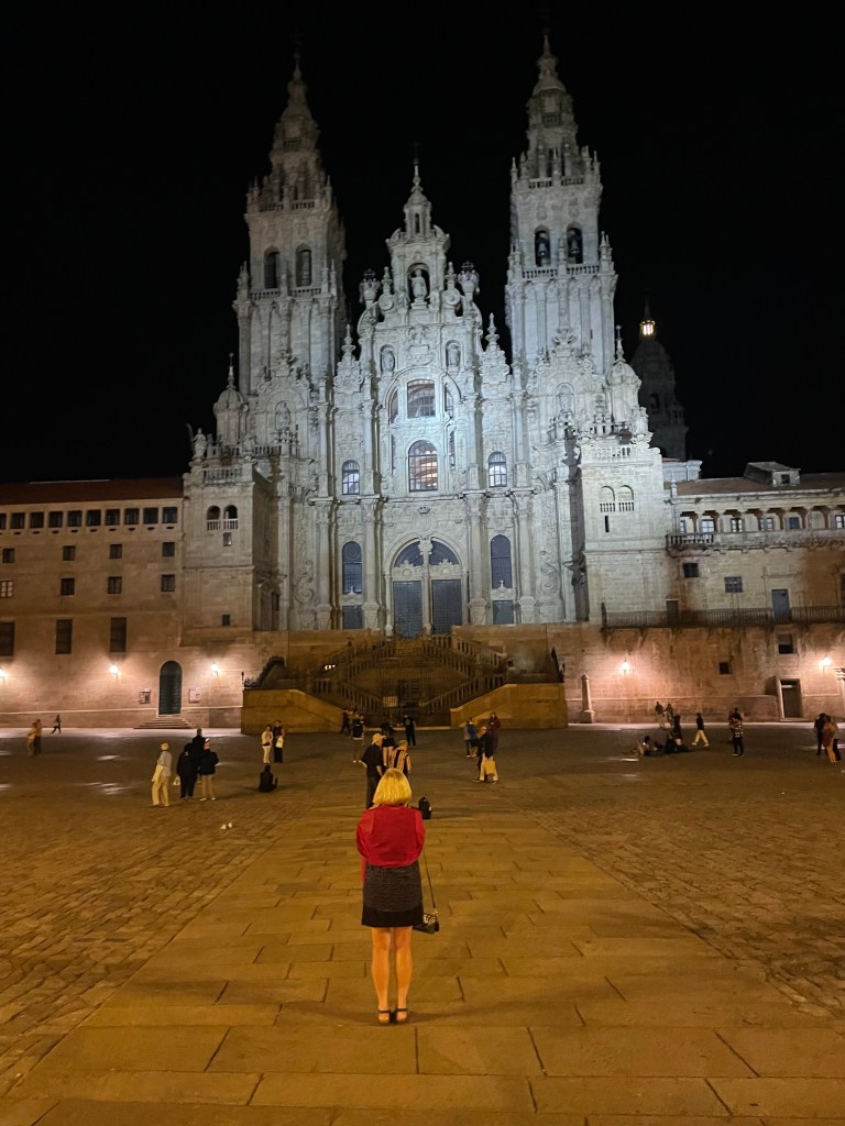 We arrived in Santiago, walking through the tunnel to the sounds of bagpipes, on a beautiful, sunny day. We rejoiced in the camaraderie of the hundreds of people in Plaza Obradoiro all enjoying their first few minutes in front of the Cathedral, all of us finally reaching our destination. Some of our Camino friends had hoped to make it in time to attend the Pilgrims Mass at noon, but we heard later that the queue was very long. We were still basking in the wonderment of my mother’s reassurance that she was right there with us, and we wanted to cherish the moment.