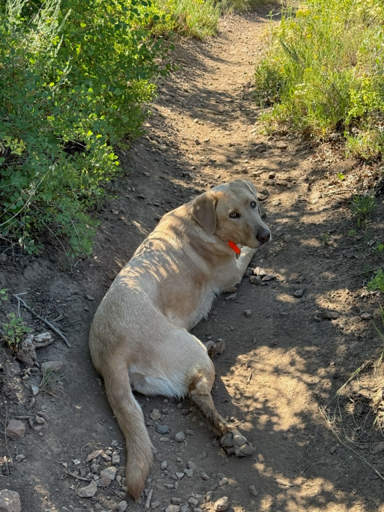 Two years ago, we trained on hiking trails at 7000-to-8000 feet above sea level, along hilly trails and streets with our 2 Labrador Retrievers Sterling and Willow. Training was great, but I never found shoes that made my feet happy for the 15-mile days on the Camino.