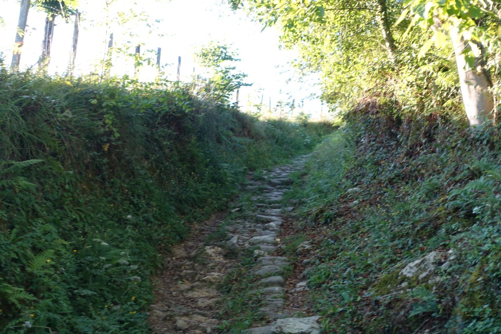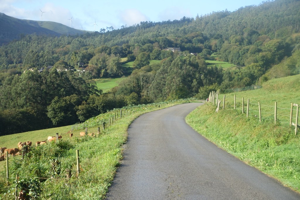 We planned to stop for a café con leche in the picturesque village of Olatz, what would have been our only opportunity to get food before we crossed from Guipuzcoa into Vizcaya, but the taverns don’t open until after 10:00, and we started out way too early that morning. So we made our way up to the tortuous “profanity hill” climb, thankful that we’d trained on Red Cloud trail in Deer Valley last month. The hill was paved since our last Camino, but the relentless switchbacks were just as hard.