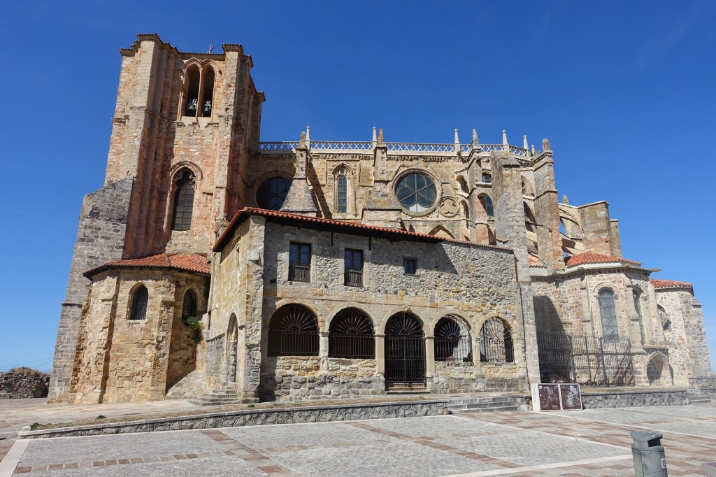 Castro Urdiales, called Flavióbriga by the Romans, is set on a cliff by the sea. A long-inhabited area, with remains dating to 12,000 BC., a Templar castle stood here. The Parish Church of Santa Maria de la Asuncion is a very famous sight. One of the Norte’s finest Gothic churches, its exterior is spectacular, with buttresses flying in all directions. Strange iconography on the main entrance’s frieze harkens back to Templar time, with rabbits kissing oxen, dragons eating serpents eating birds, and so on.