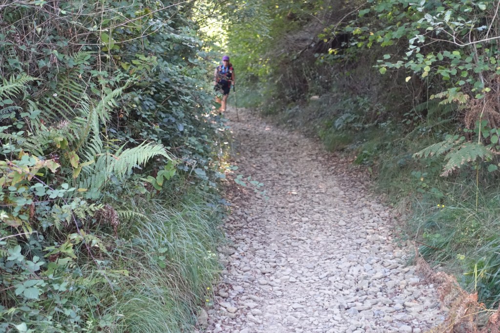 With views of the Artibai valley we made it down the challenging descent, both because of the slope and because of the slippery cobblestone pavement. Our knees were screaming by the time we got to the bottom. The gentle meadow at the end of this stretch was a welcome relief.
