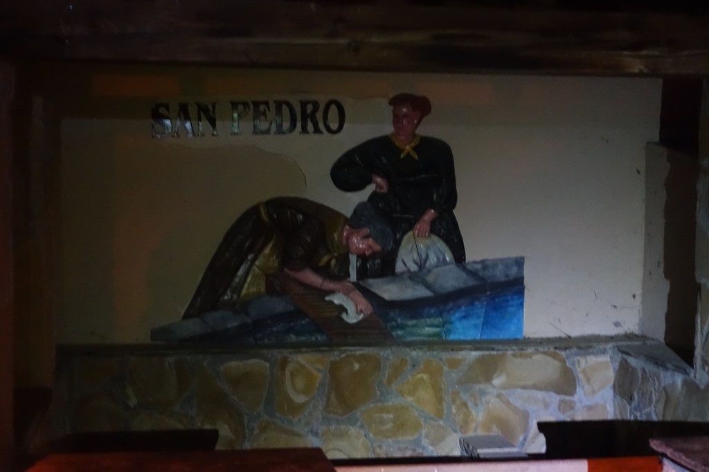We had a delicious comida at LarOs Píos, after seeing a small parade of people wandering around the Plaza, dancing to bagpipes and a drummer. They came into the restaurant where we were dining… after they danced outside for about 15 minutes to the bagpipe music. No idea what that was about, but they seemed happy, all dressed up in fancy clothes. Before heading back to our hotel, we stopped in at the Church of Santa Maria to light a few candles, say a prayer, and take some pictures. Many of the churches have automatic [electric] candles. I imagine it’s to make sure that nobody inadvertently starts a fire. But it is odd to put a few coins into a slot to light a candle.