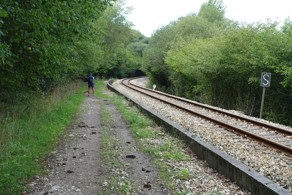 We walked alongside train tracks and on a lot of paved roads. The pavement is not the best for our feet, legs, and backs. I prefer it over wet and slippery, rocky paths, but I sure do miss the Midmountain trail in Park City. We met João Paulo from Brazil, who was doing a “fast” (as in fasting from food) day. Now that’s what I call poco loco!