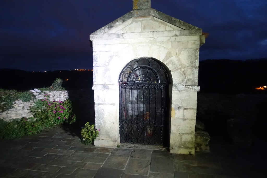 We had a relatively short trek this day, but we still left very early. We passed a lot of churches, chapels, ornate cemeteries, and what we later learned were “paneras” (bread baskets) similar to the hórreos (granaries). The panera has a flat roof with an easel; hórreos have gabled roofs that join at the upper point. In addition, paneras are usually larger, and have bases of more than 4 “legs”.
