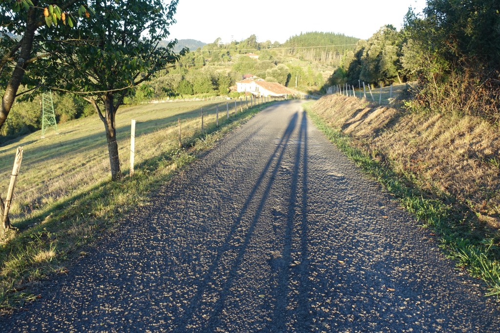 Today we left the Cantabrian Sea behind to enter the Basque mountains and their hamlets. Luckily we started out very early! The beginning of our walk was beautiful, and we were feeling pretty good about our progress. It is one of the hardest stages since the continuous ups and downs were tough on our legs (knees especially). We quickly switched from the asphalt to dirt roads, surrounded by trees and among several hamlets so typical of this area.