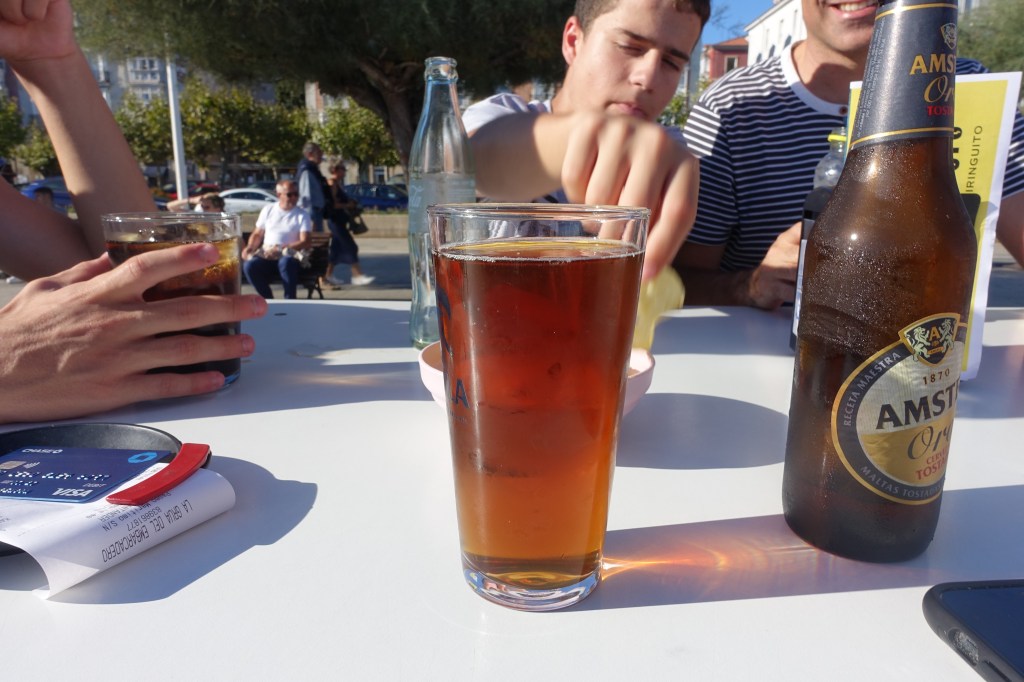 We asked Garrett to join us for lunch, but he wanted to stay closer to the hotel. We had a good meal at La Marinera, walked around the castle ruins, the Gothic Santa Maria Church, and harbor, and went for a walk on the beach. The cold water was just what our sore feet and swollen ankles needed.
