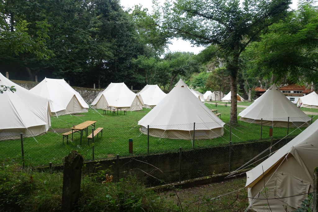 It’s funny how your mind plays tricks on you. I remembered this stage from 5 years ago as difficult, but very pleasant, a mostly even walk on the high cliffs above the Cantabrian Sea before a tough descent to Llanes. Maybe because we had 2 hours of heavy rain and we were walking in very wet shoes, maybe because we took a coastal trail instead of staying on the paved roads…. In any case, the last 5 miles of this stage were really hard. Lots of ups and downs, the town seemed like it was getting farther away rather than closer. Thankfully the rain stopped and our clothing dried out a bit before we walked to a restaurant for a welcome meal, cold water, and wine. Hotel Sablon is very nice, but once again, no a/c. We put our shoes, insoles, and clothes on the balcony to dry, and decided to deal with a hot room rather than mosquitos. Longing for a good night’s sleep.