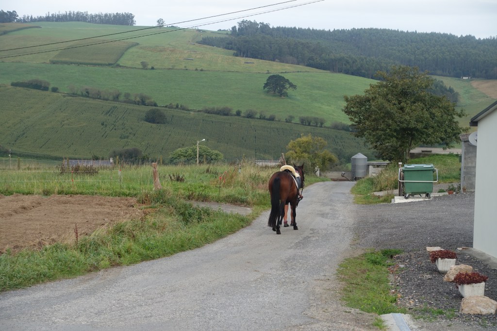 We also met a couple from Arlington Virginia who were heading to Vilalba and will get to Santiago a day before us. We’re taking a rest day tomorrow, so we’re a day behind most of the people that we’ve met this past week. We were surprised to see a woman who is doing the Camino on horseback! She walks the horse through the villages.